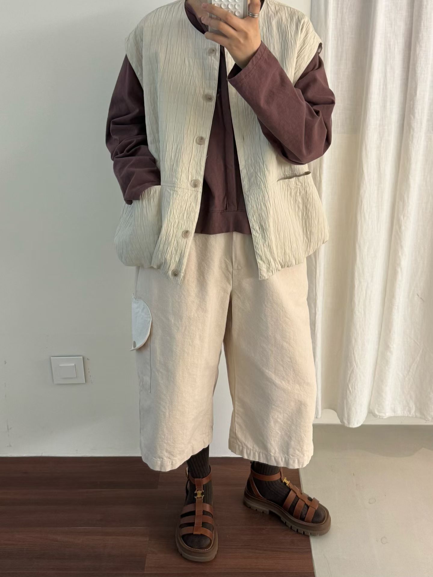 抓褶口袋圓領背心 20601