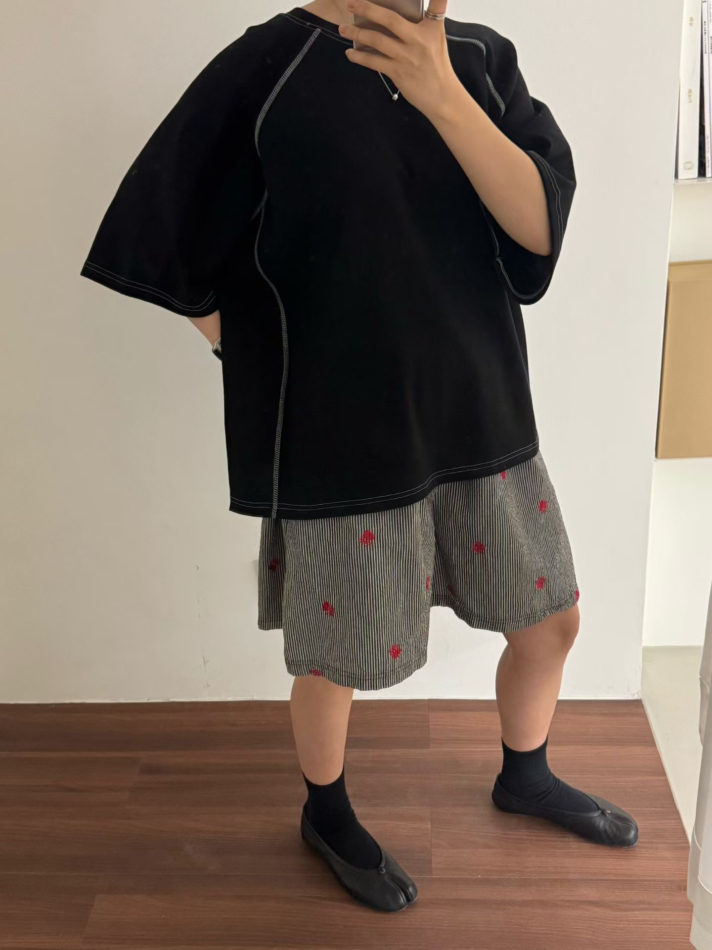 直條紋刺繡短褲 26040912