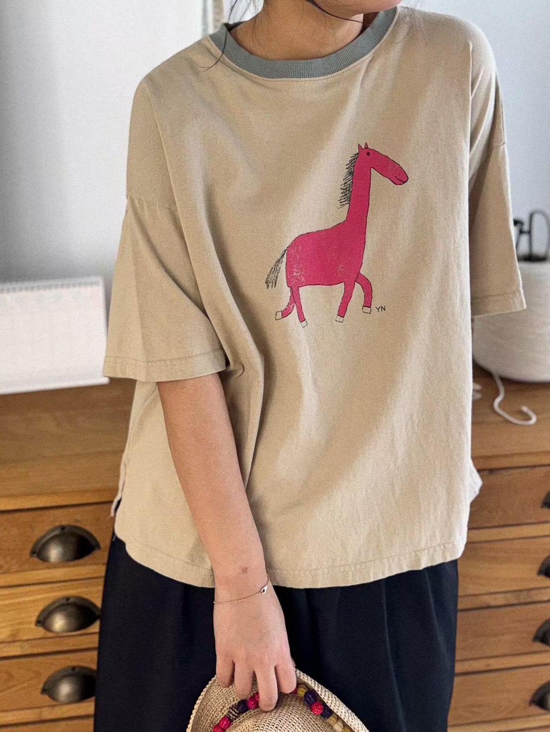 配色領圖繪上衣 26030905